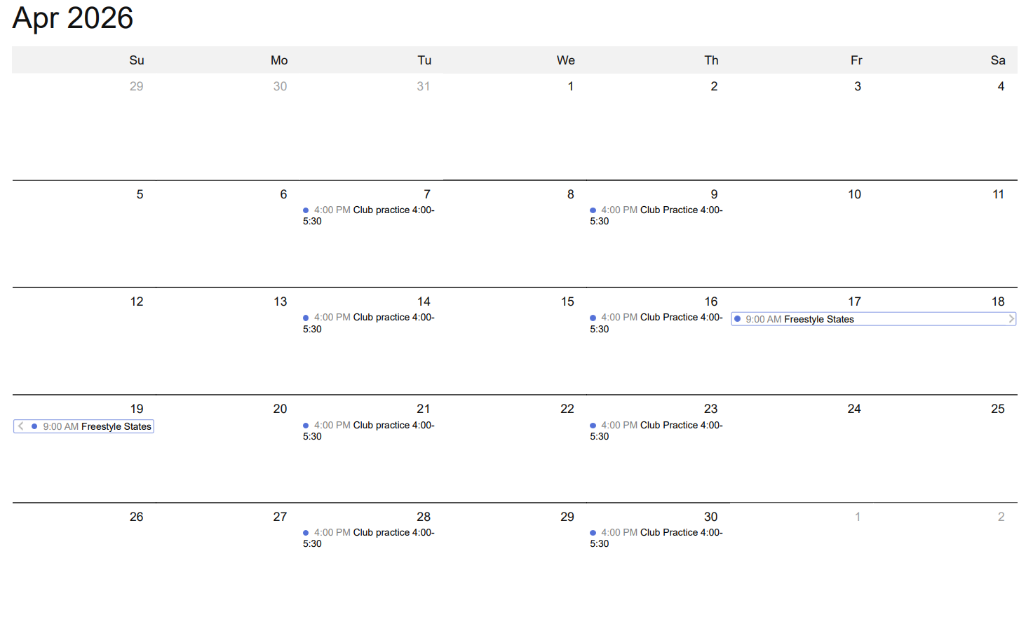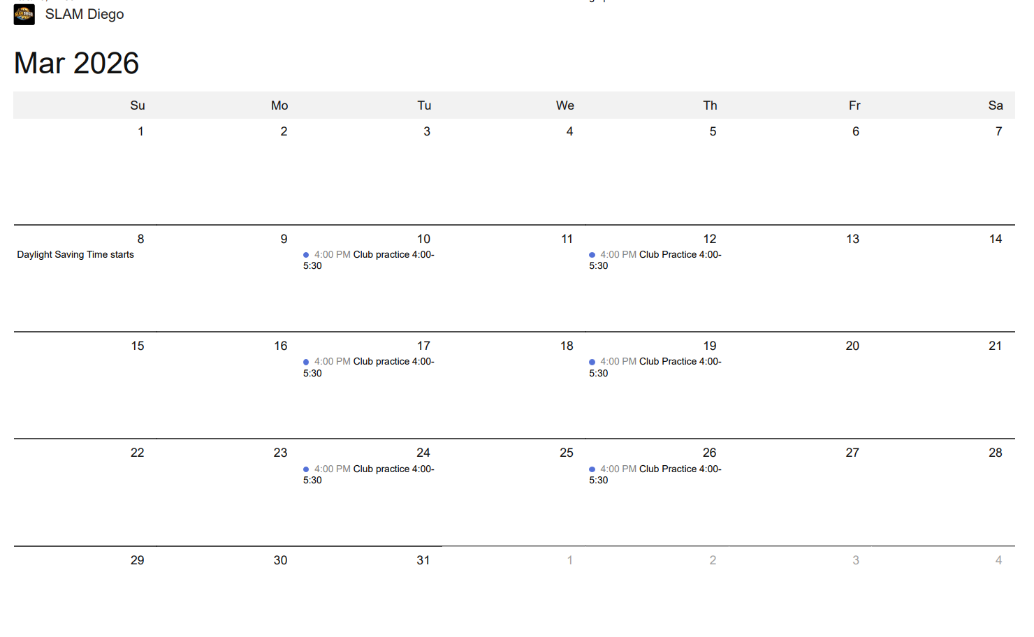 Spring Practice Calendar